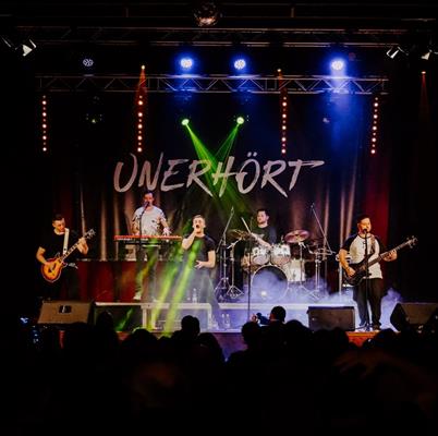 UNERHÖRTAUSTROPOP/ROCKMit lebensnahen Texten, packenden Melodien und jeder Menge Energie hatsich Unerhört zu einem festen Bestandteil der lokalen Austropop Szeneentwickelt. Bekannt sind sie zudem vor allem für eines: Eine einzigartige Show!Und das nicht nur weil sie 2024 das höchste Konzert Wiens auf einem Kran in470m Seehöhe gespielt haben:Mit Selbstironie und fast schon kabarettähnlichen Einlagen sind ihre Auftrittegeprägt von einem intensiven Austausch und einer tiefen Verbindung zumPublikum. Dies wird abgerundet durch eine energiegeladene undleidenschaftliche Performance, die ihresgleichen sucht.Management / Booking:office@unerhoert.athttps://www.facebook.com/unerhoertoffiziell